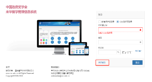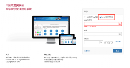 STEP 2:Enter your CSC registration number, password, and verification code, and click the "Login" button.