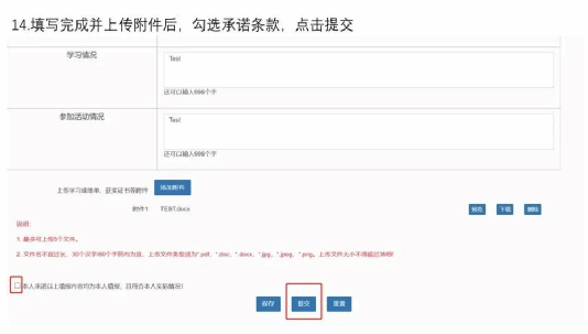 STEP 5:Check the terms of commitment, and click submit after filling and uploading your documents.