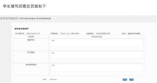1. The student self-assessment form consists of three parts: compliance with rules and regulations, academic performance, and participation in activities. Please carefully fill in your information, each part should not exceed 1,000 words. (Chinese-taught students must fill in Chinese, while English-taught students can fill in English)